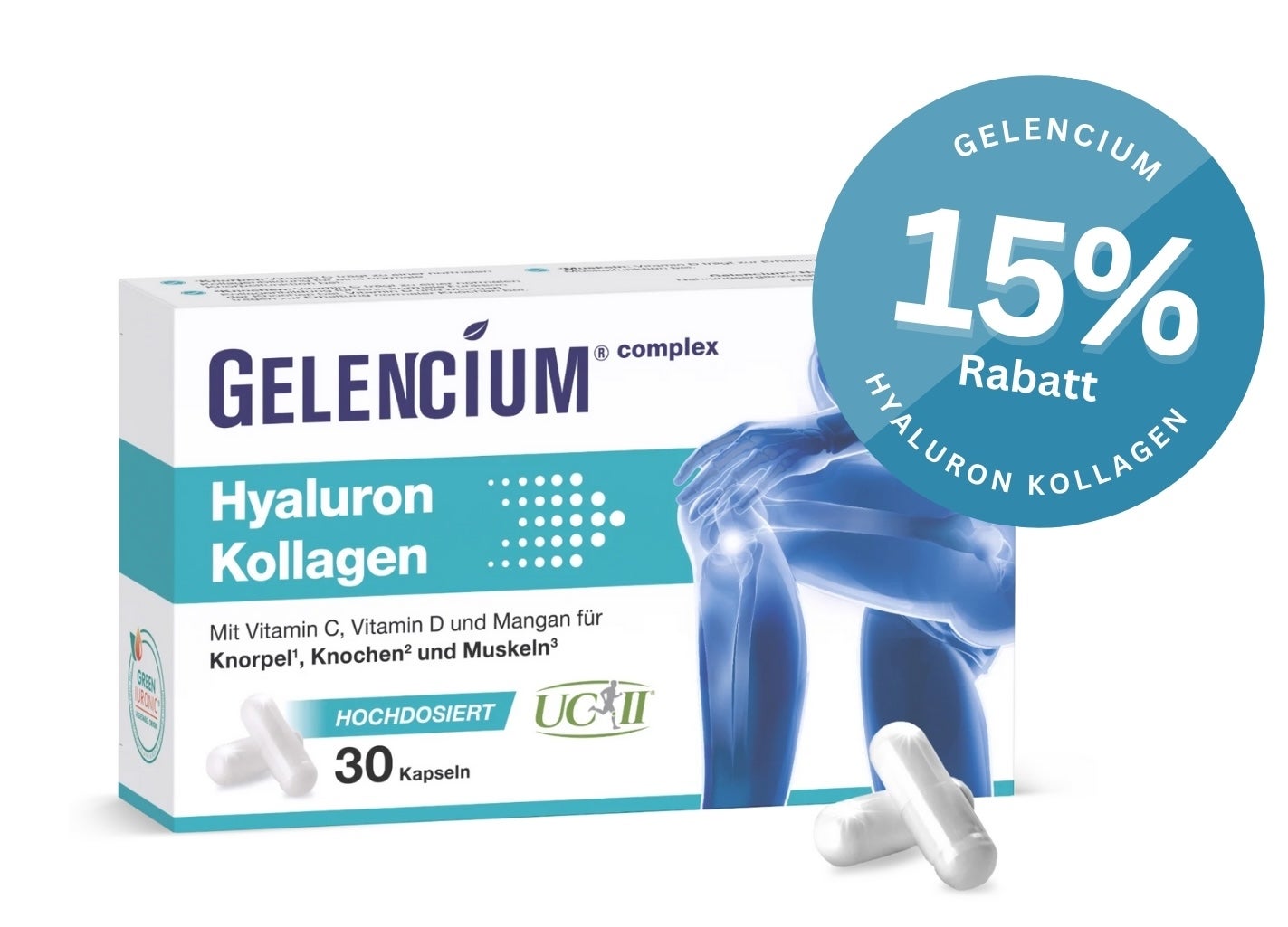 Exklusives Online-Angebot: GELENCIUM Hyaluron Kollagen für gesunde und bewegliche Gelenke