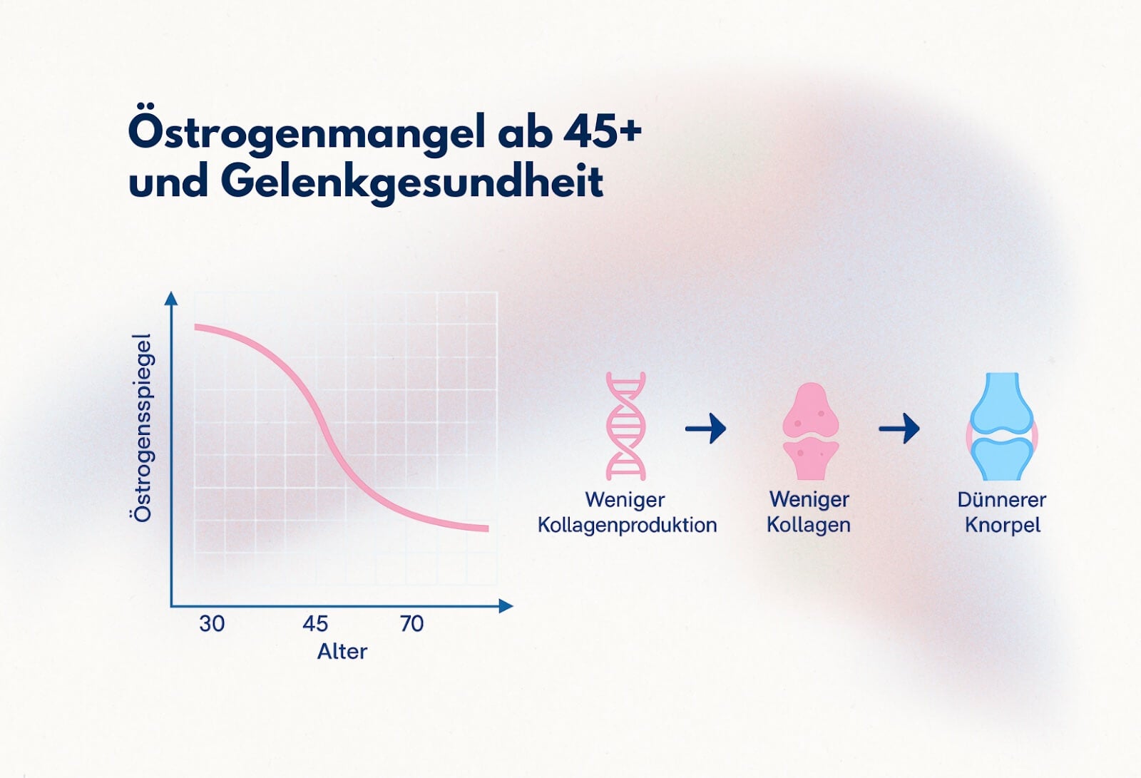 - Östrogenmangel ab 45+, der die Gelenkgesundheit dramatisch beeinflusst